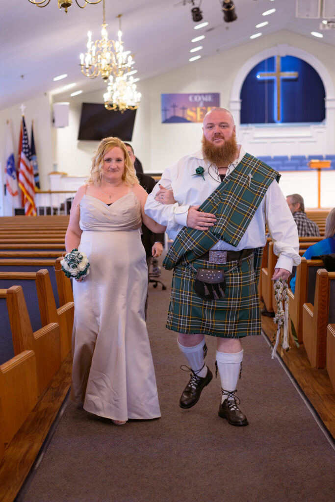 Dustin wore a traditional Scottish kilt with his family tartan, while Arlee wore the same outfit she wore on their original wedding day. Seeing them stand together again in those same pieces felt like a beautiful bridge between the beginning of their marriage and the life they’ve built since.